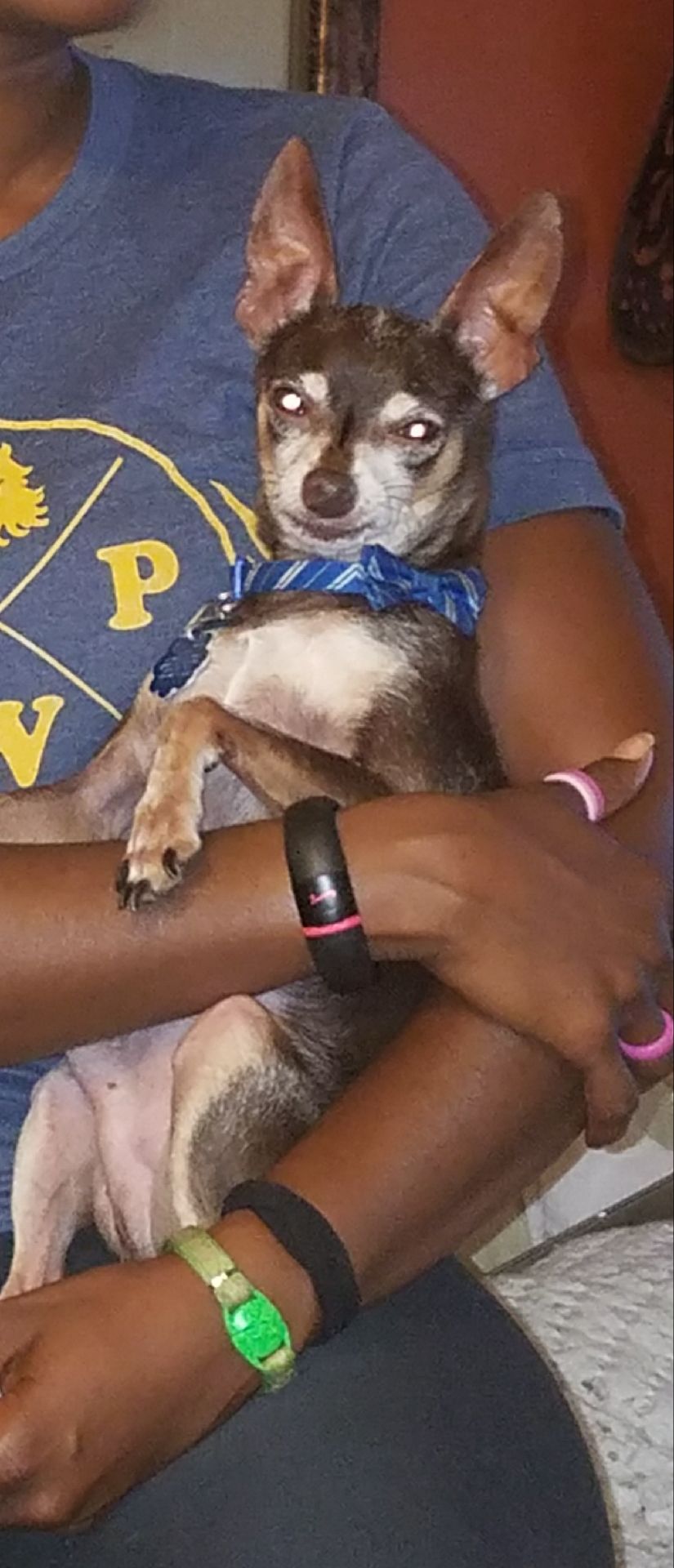 Pet Description:Mostly brown, deer head chihuahua, skiddish |