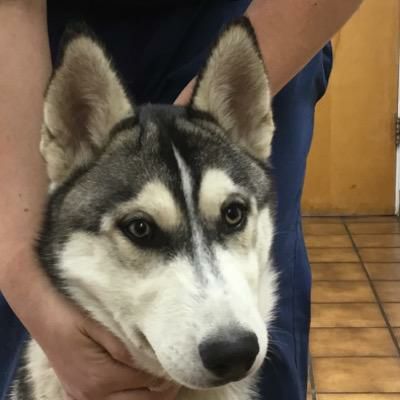Pet Description:She is 5-6 months old, about 40 lbs, slender with long snout, wear a brown collar, look like a wolf. She is more diluted black - white coat. |