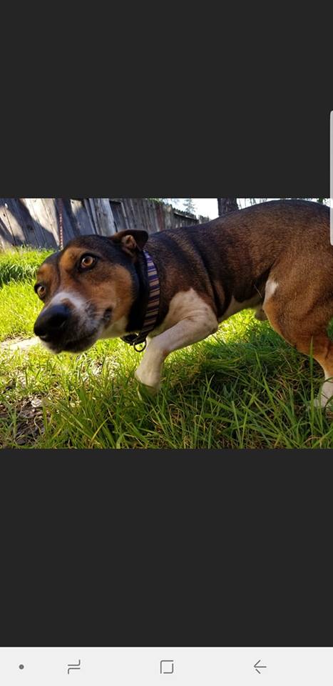 Pet Description:Very friendly. Half shepard and half terrier. Had on a blue striped. |
