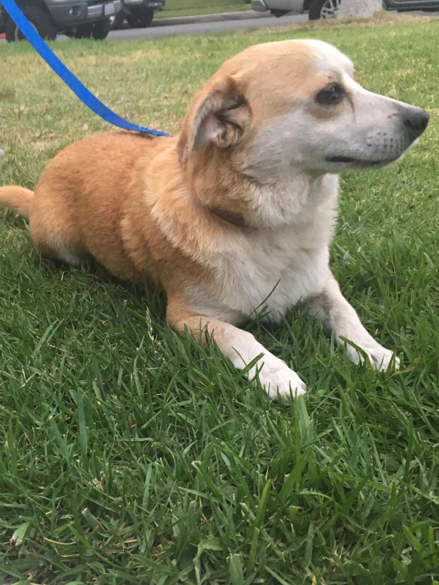 Pet Description:He is very sweet. He's about 20lbs and very loving. His ears flop to the sides like bat wings. His collar has red bones on it. He loves to explore and chase cats. |