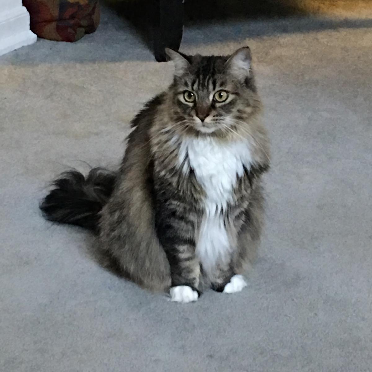 Pet Description:Missing Maine Coon, female cat named “Mia”. Tabby-brown colored with white paws and white on the back of the right rear leg. Approximately 10 pounds, 5-years old, microchipped with Home Again. Lives in the Kara Way/Smith Avenue area. Last seen Monday (June 4, 2018) evening. Friendly, shots are up up-to-date. |