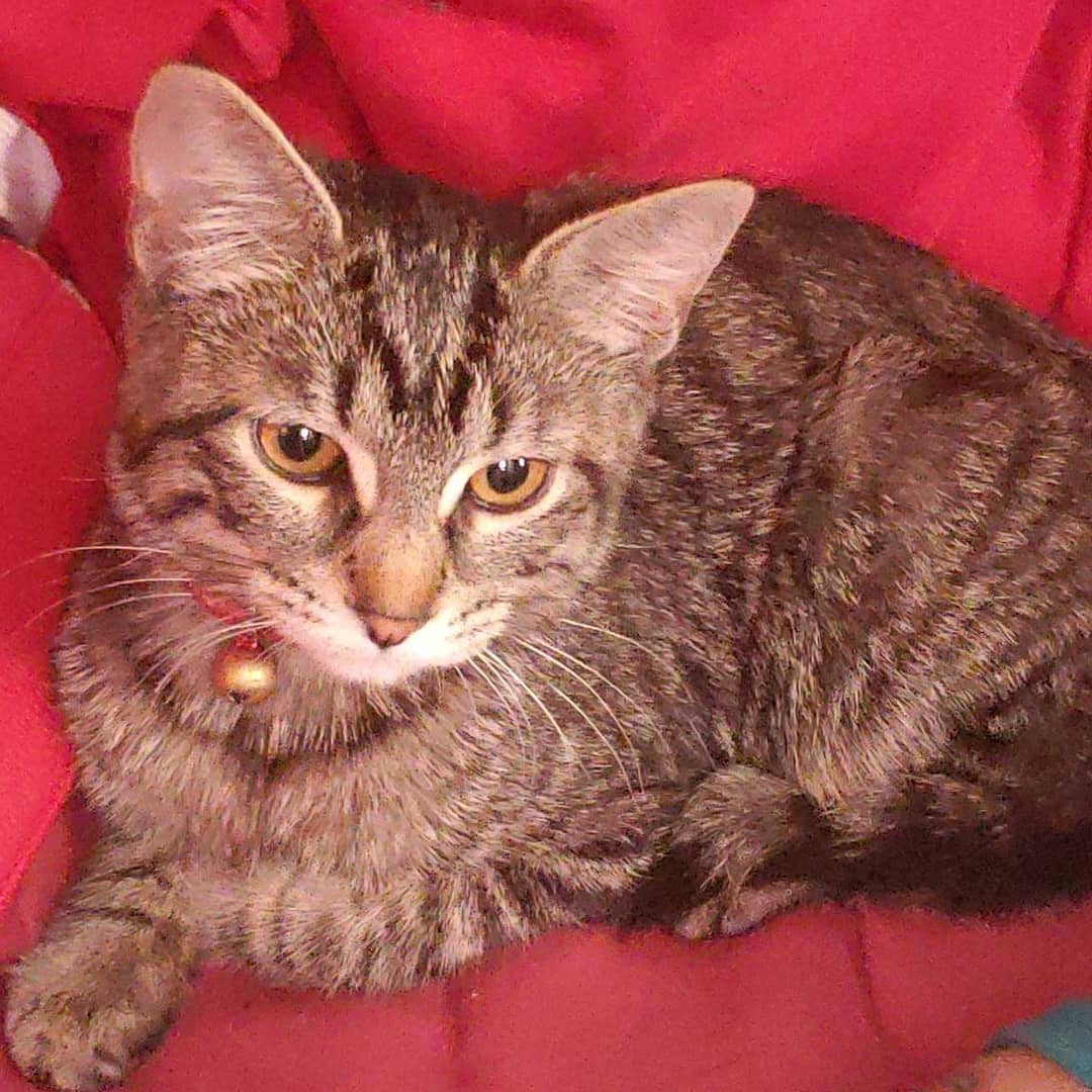 Pet Description:Very sweet kitten. Wearing a collar with a bell on it. About 4 months old. Tabby colored. |