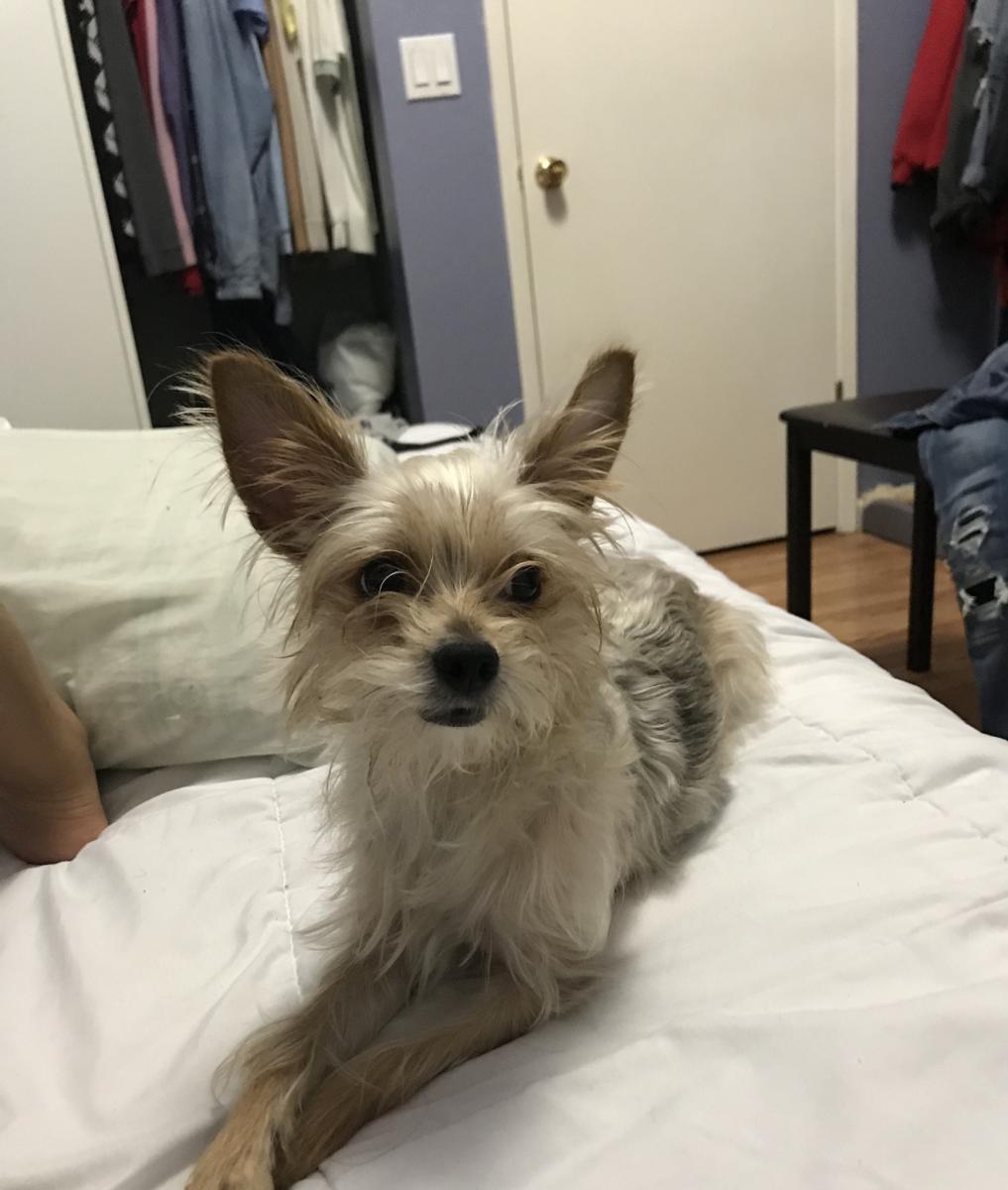 Pet Description:Jillian is mixed with a chihuahua so she is larger than a normal yorkie. Her hair is wavy near her bottom area and medium length. Her coat color is a mixture of tan, white, brown, and gray |