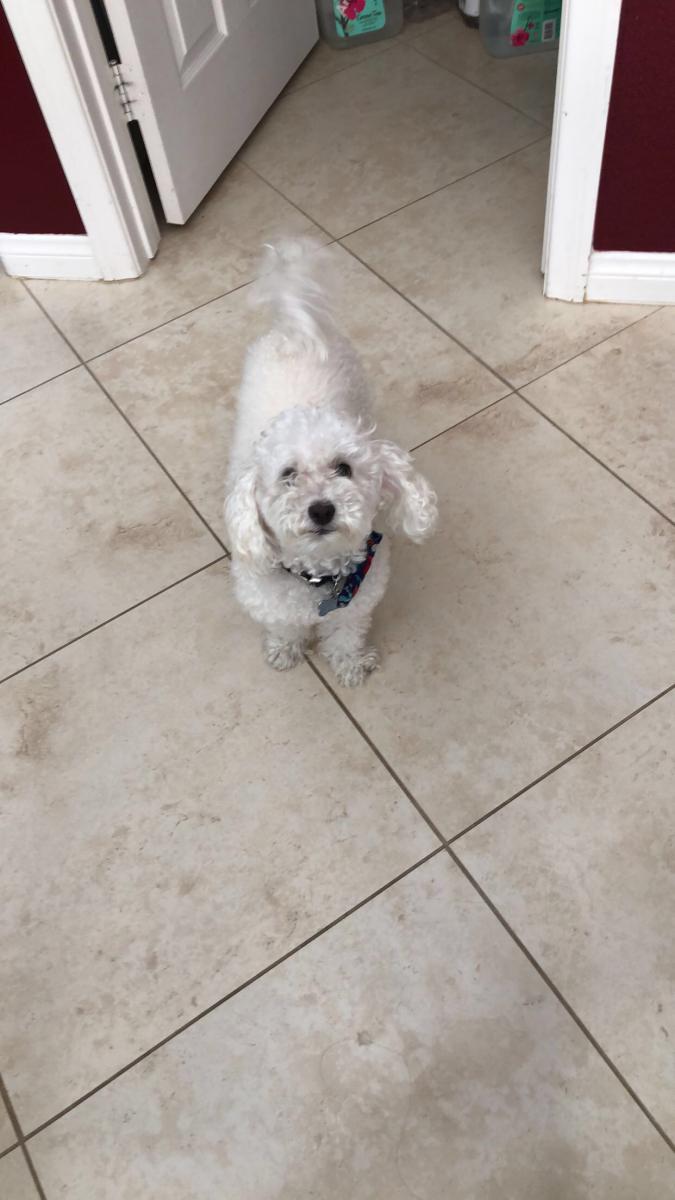 Pet Description:Small 10lb, white curly haired maltipoo. Last seen wearing a collar with a blue whale bowtie. |