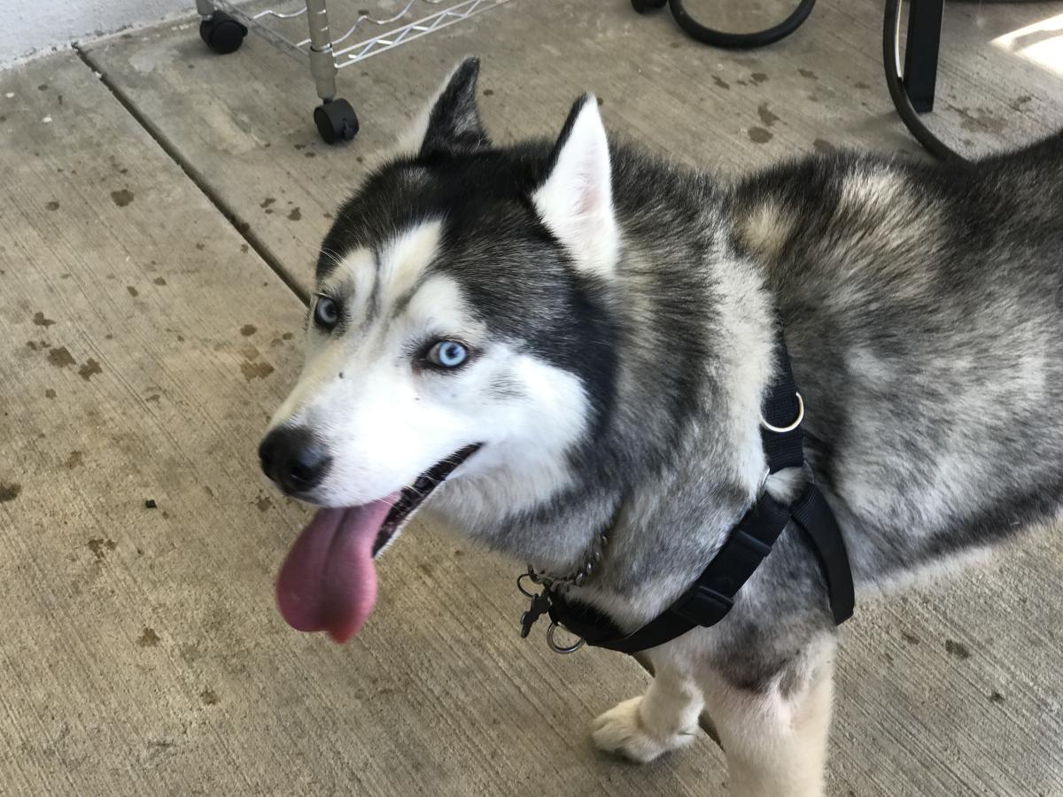 Pet Description:Grey and white husky, male, wearing a red collar. His tag fell off. He’s very friendly. |