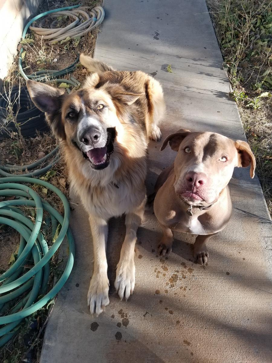 German Shepherd, Pit Bull |