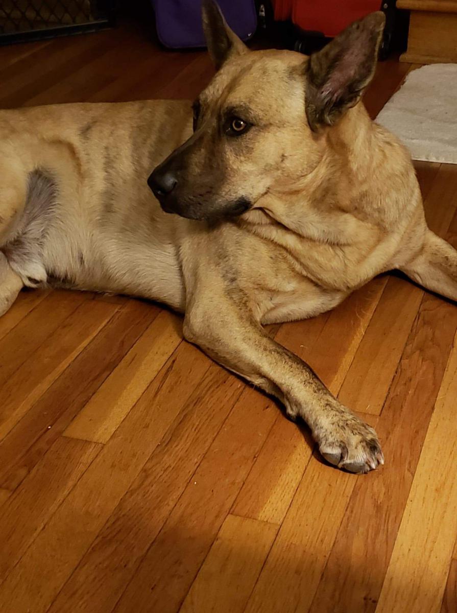 Pet Description:Walks with a limp. Male, black color, tyedye, bandana.. |