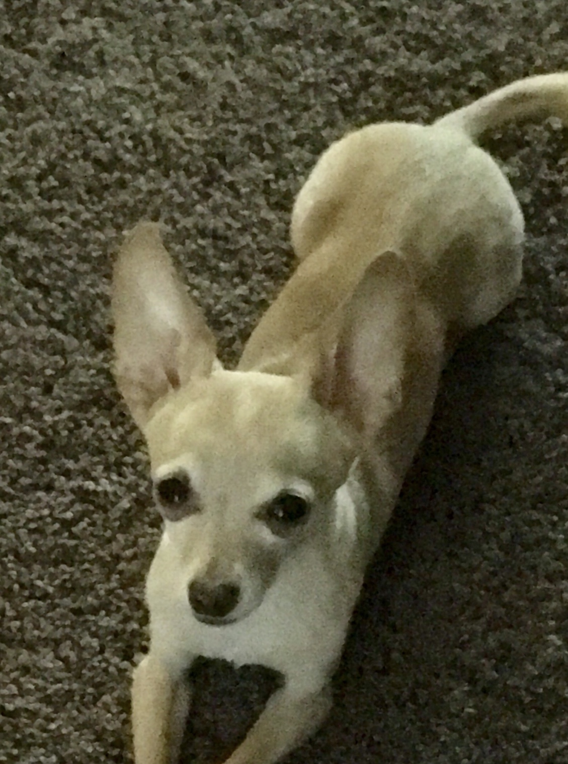 Pet Description:Tan with blue collar with bell Answer to “peanut” |