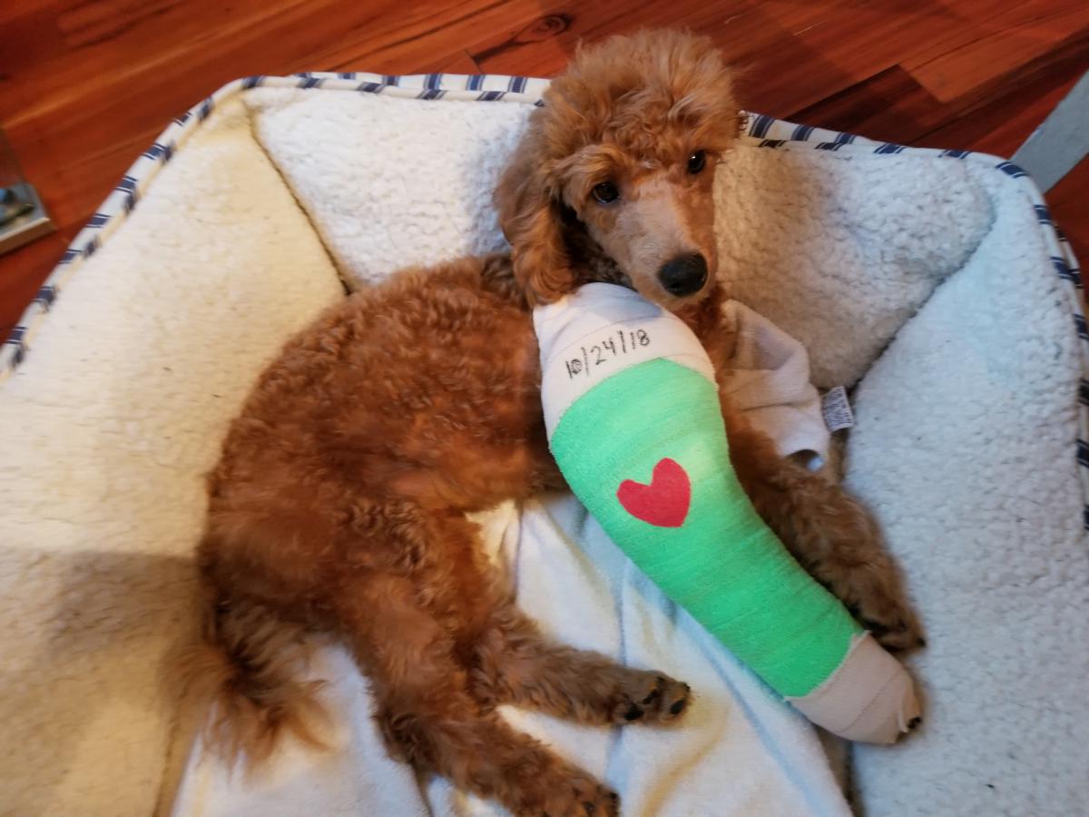 Pet Description:Brown small poodle, from recent accident he is limping his front right leg. And he might need a surgery, depending on his condition. |