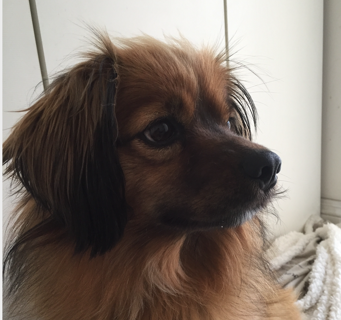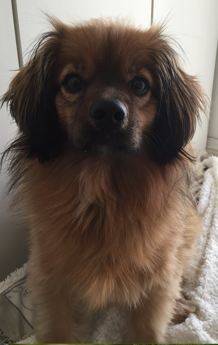 Pet Description:Coffee is a medium-sized dog and has a long coat. She is wearing a tan and red/burgundy collar. She has black fur on her ears and tail, but she is mostly tan/ brown. She has flopper over ears and is four years old. |