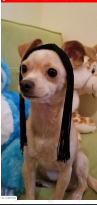 Pet Description:small tan chihuahua mix' one ear down the other up was wearing a black harness with colored strips limping from left front foot |