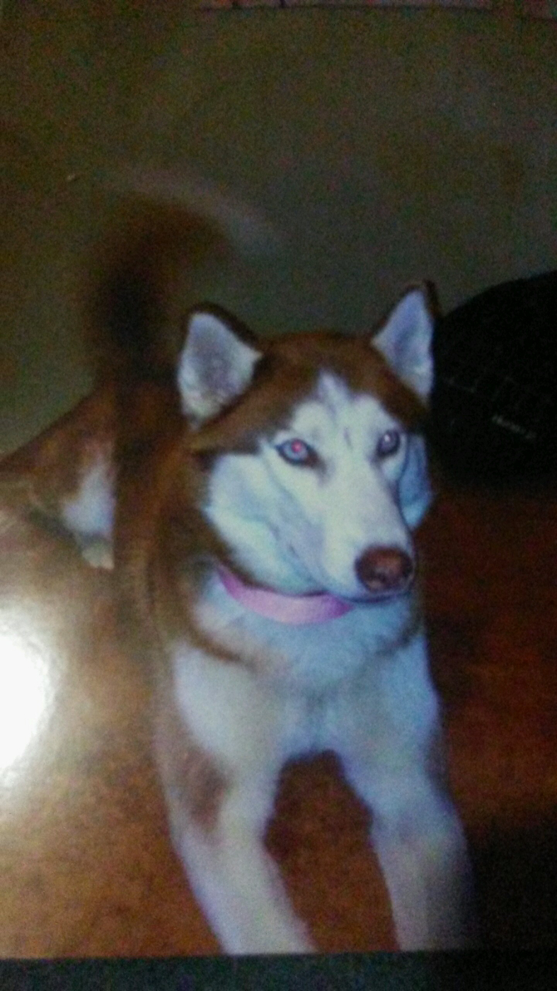 Pet Description:Ocean blue color eyes. Red and white fur. |