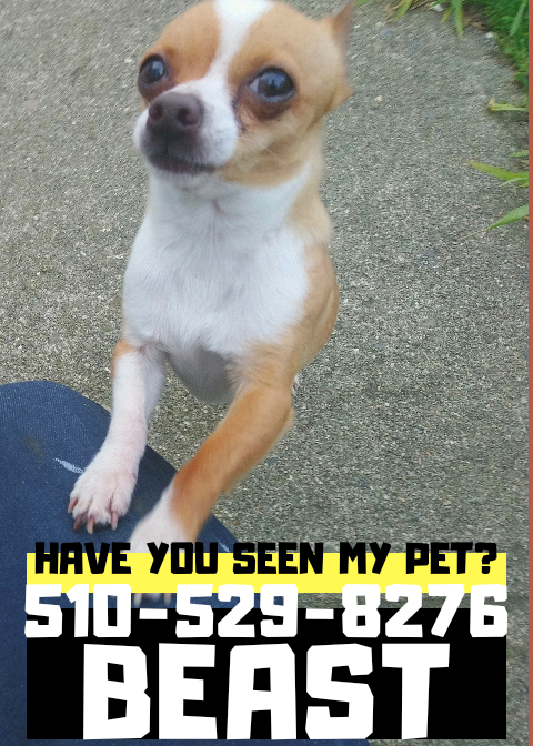 Pet Description:Tan and white, 3.5 pounds, not neutered male chihuahua |