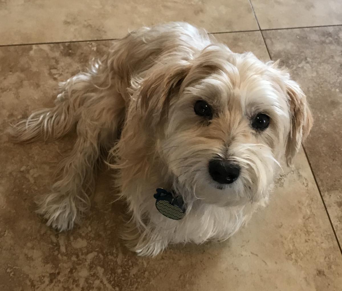 Pet Description:Maltese Yorkie Mix, small and weighs about 15 pounds, male, neutered, easily approachable and friendly, tan-cream color, does not have a collar on. |