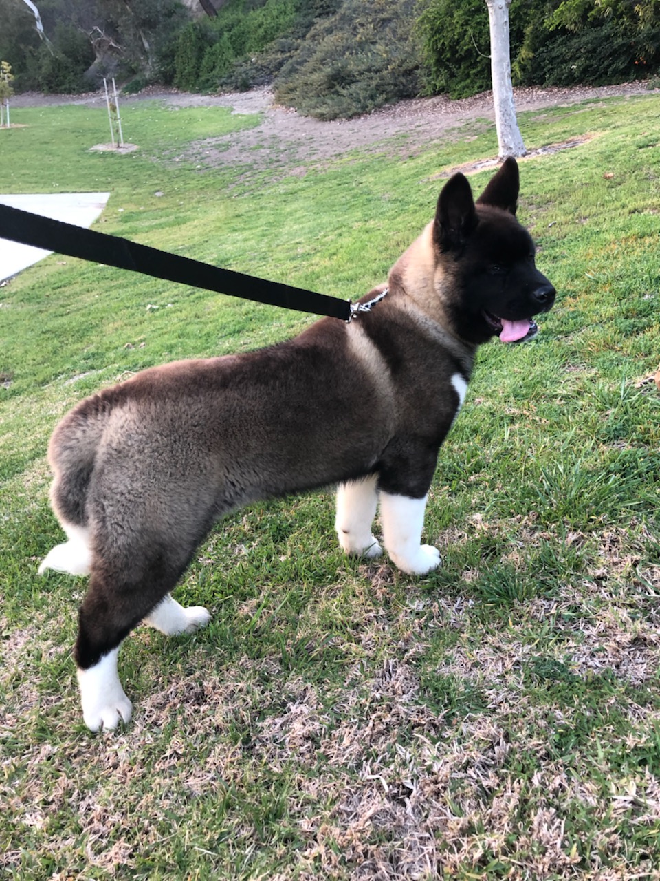 Pet Description:Akita puppy brown and tan with white paws |