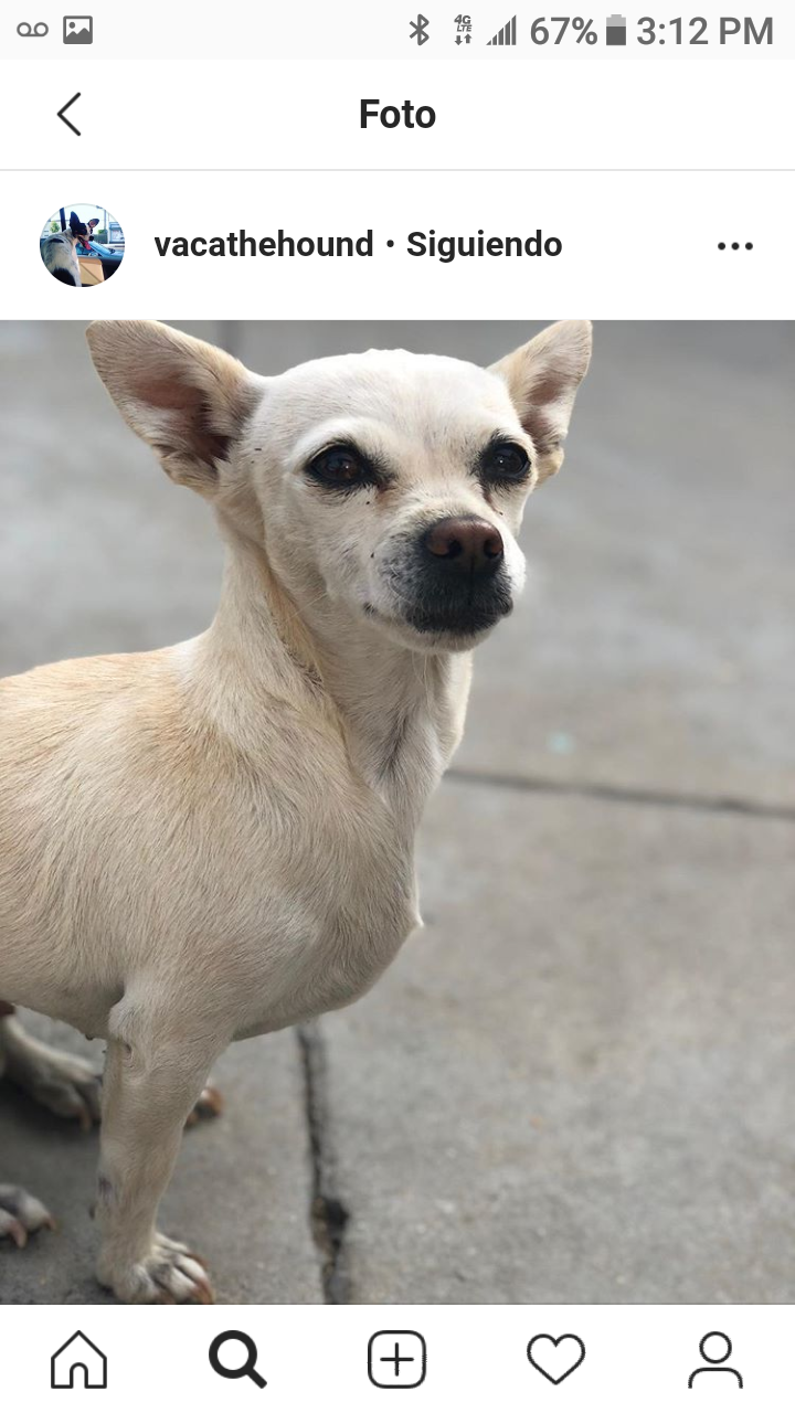 Pet Description:Two toned blonde chihuahua with Brown nose and pink ears |