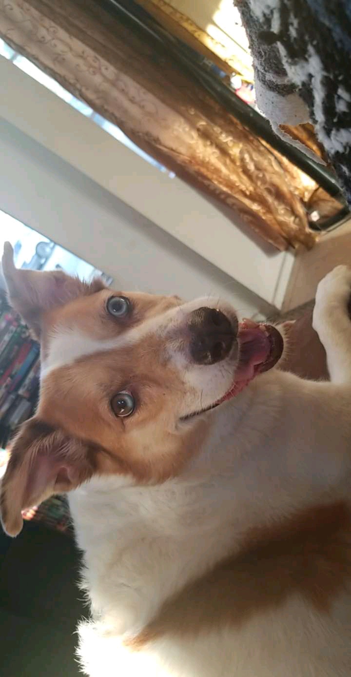 Pet Description:Shes a medium sized dog mainly white with brown spots kinda like a cow. Shes very friendly but can be skiddish if shes scared. She responds well to her name and loves squeaky toys. |
