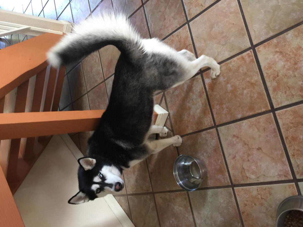 Pet Description:Black and white husky with one blue one brown eye. Very friendly |