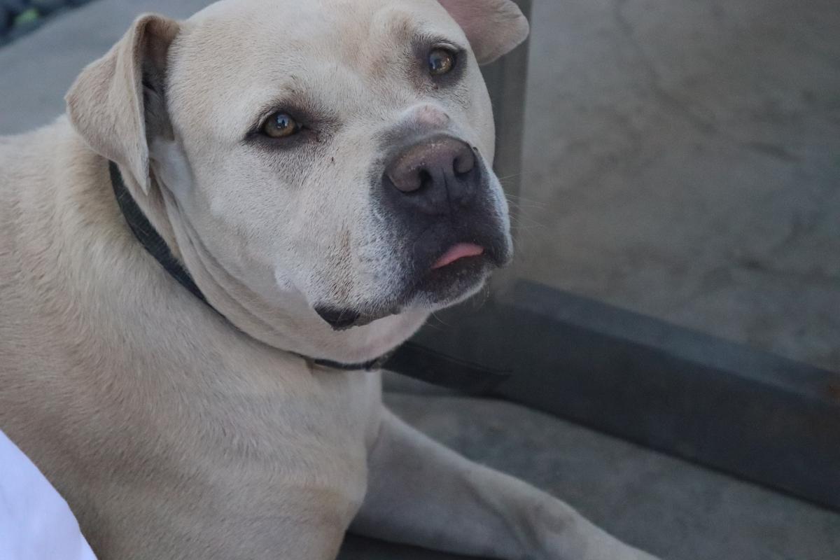Pet Description:Charlie is a mixed lab and Pitt he is a light tab color with green eyes. He has cancer so has a big lump on his nose |