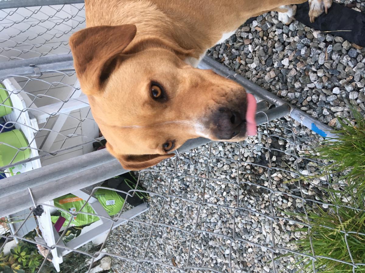 Pet Description:Female, tan white white belly markings. White stripe down middle of head. Friendly |