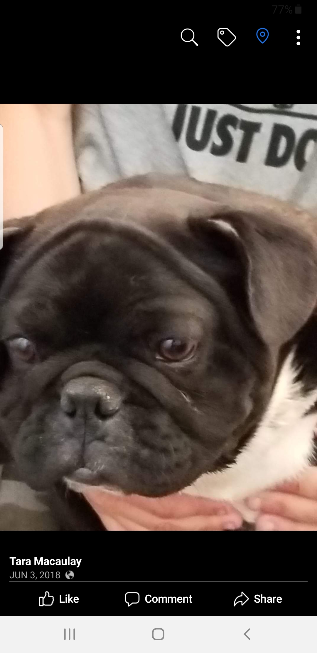 Pet Description:Spiked collar, small but chunky/heavy (about 35 lbs), answers to the name |