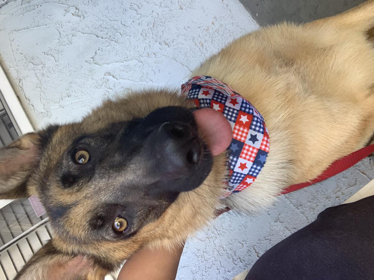 Pet Description:Pink collar and patriotic bandanna.Not chipped. |