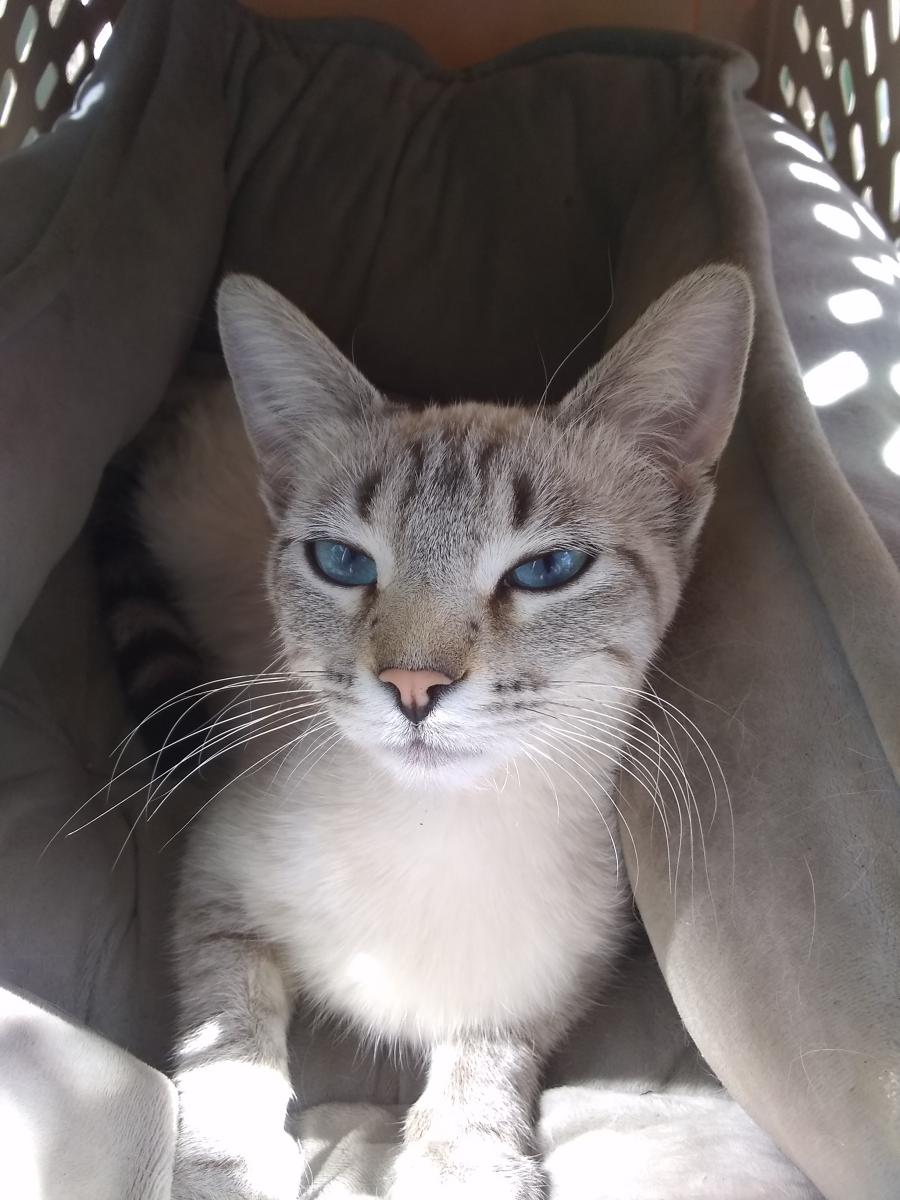 Pet Description:She has blue eye mostly all white is a 2 year old small Siamese lynx-point she's microchipped and neutered very friendly and Sweet pls contact me if you find her just want her back home safe ?? |