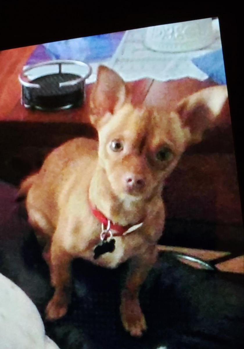 Pet Description:7lb spayed female Red chihuahua. Has an all red nose. She is a short legged chihuahua, not tall, and has a curl in her tail. Will be scared of people. More likely to allow a female to approach than a male and food may help catch her. |