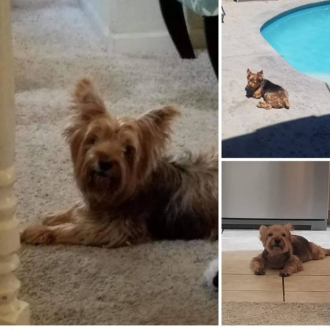 Pet Description:15lb Senior(14yrs old) Male Yorkie, Short tan and black hair, straight up ears, no collar, no microchip. |