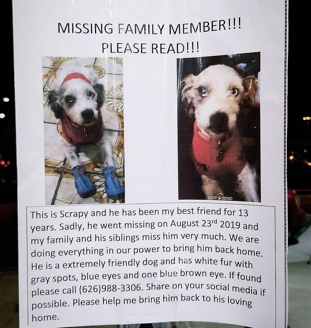 Pet Description:One blue eye and one blue brown eye. White fure dray spots. Gray spot on right eye and gray ears. Small terrier mix. |