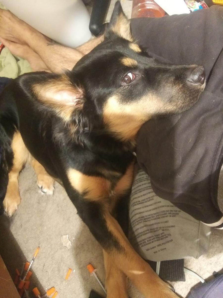Pet Description:Mainly black in color with a brown belly and brown eyebrows. Breed is either a German Shepard or rottweiler possibly even a mix of both breeds I'm thinking. Her name is Sadie she has on a maroon colored collar that says k-9 on it in silver writing and she just turned 1 year's old. She's a very good dog that I trained very well, she will not bite she just barks. She is medium-small in size and has a tag thing on her collar from the vet. |