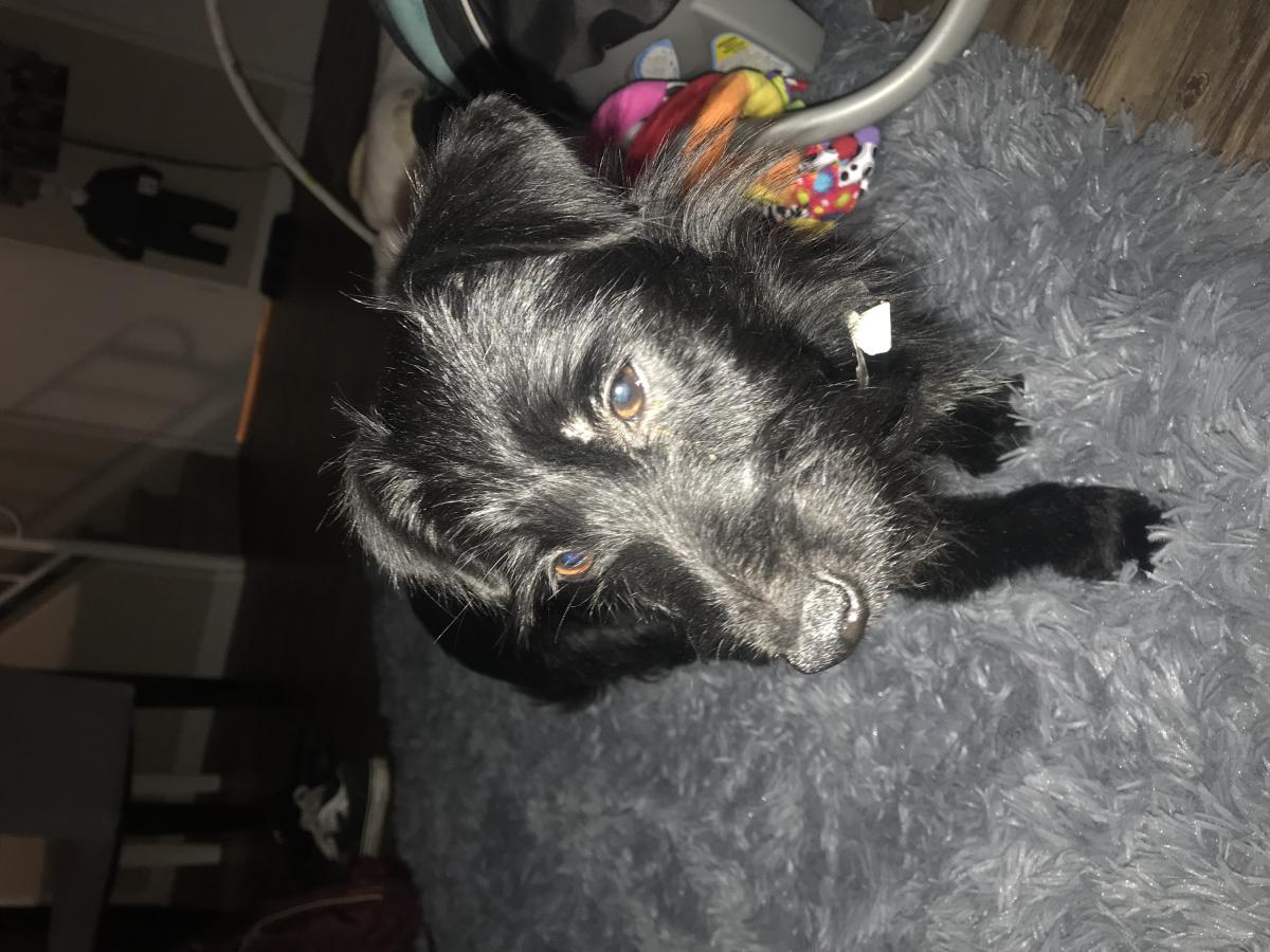 Pet Description:9 month old long haired female black terrier/daschund mix - went missing during walk so her leash was still attached |