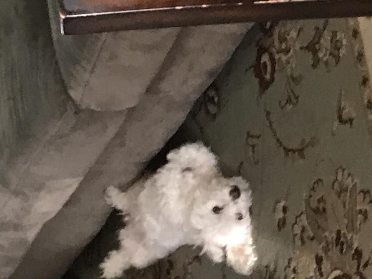 Pet Description:She’s a Poodle/Maltese. She has a friendly demeanor, weighs about 10lbs, answers to the name of Khloe & currently has a bald spot towards the bottom of her back due to being sick & still recovering. |