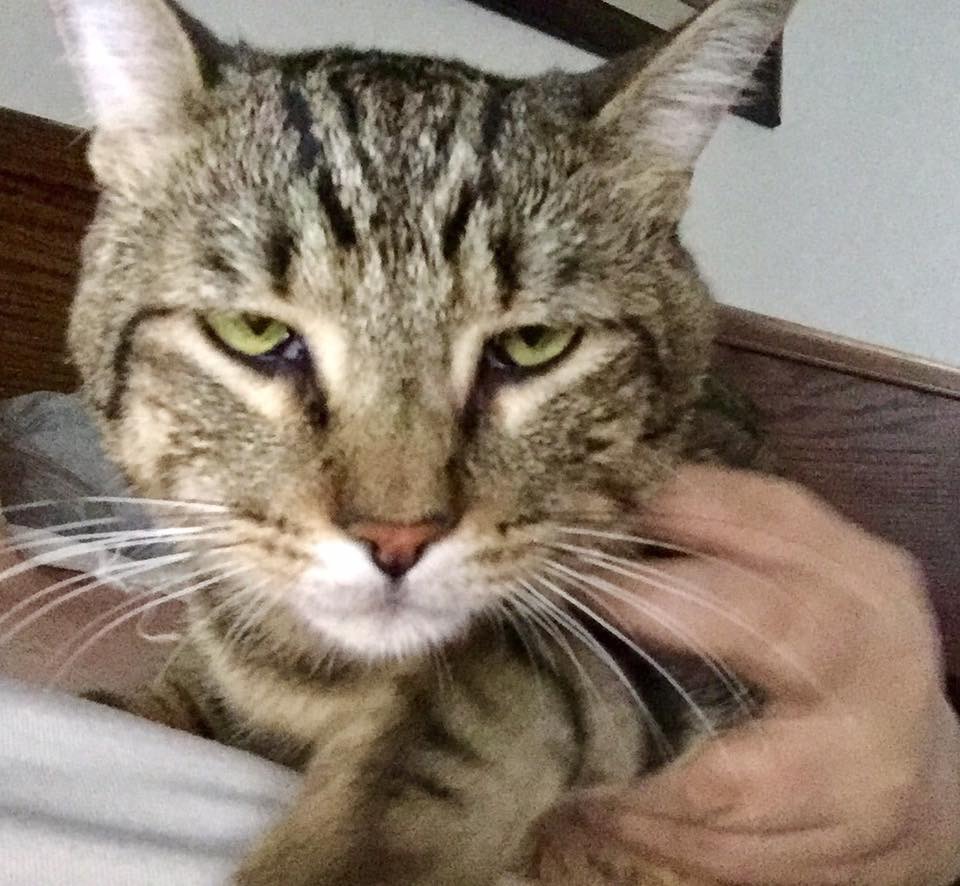 Pet Description:He is a gray tabby and his belly fur has an orangish tint. He is an indoor cat who escaped when our water heater was replaced. He is chipped and neutered. |