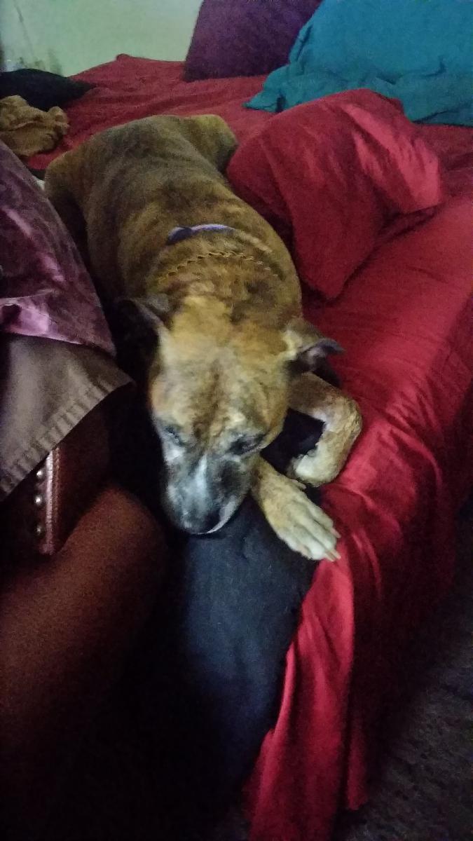 Pet Description:Hees ac brindle color he's like 8 years old he did have a color on him with name and address |