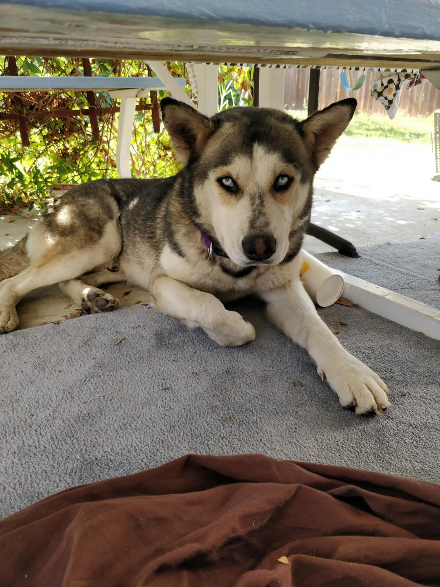 Pet Description:Blue eyes, male, about 2 years old and 55 lbs. |