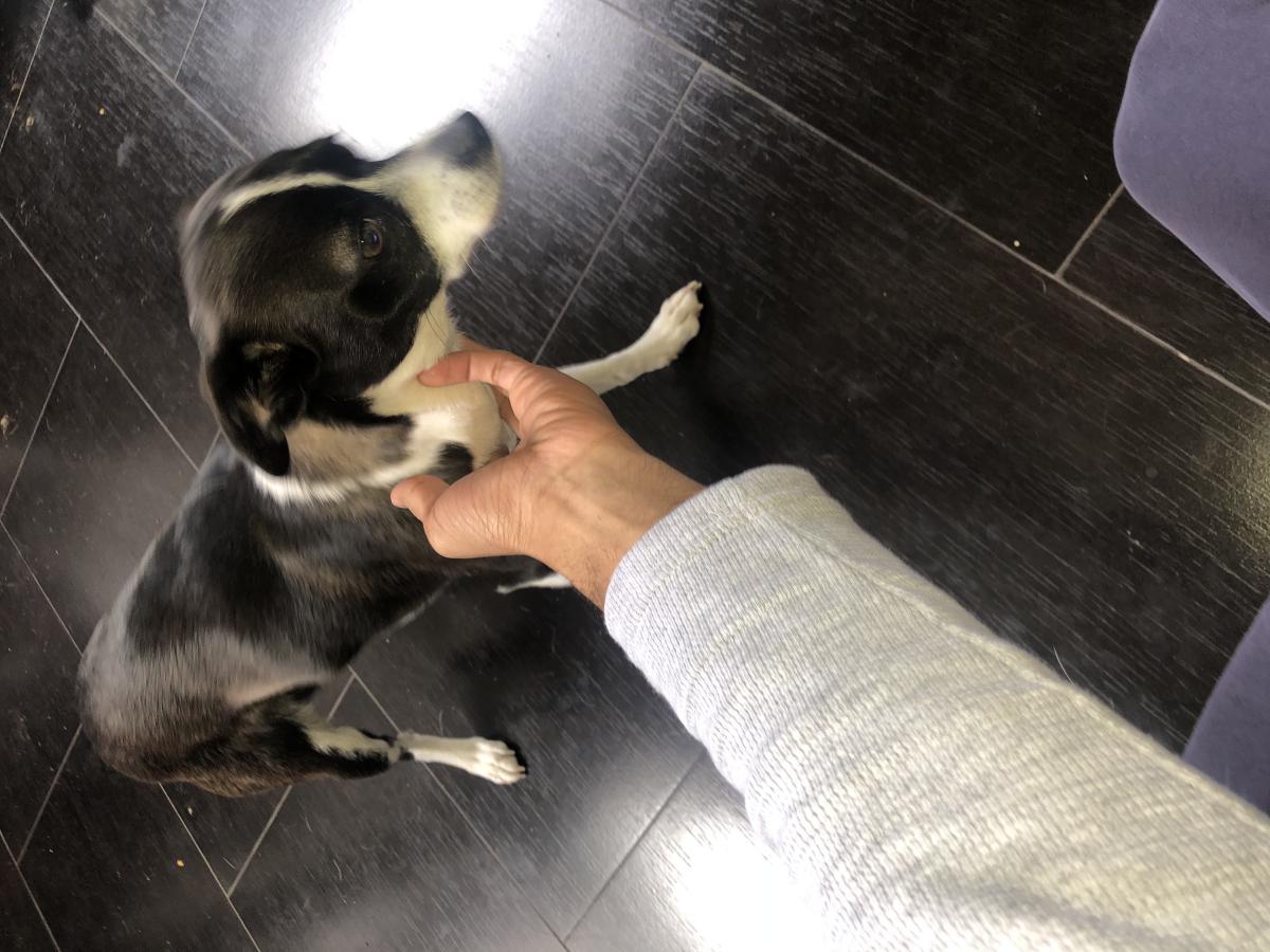 Pet Description:Seems to be young, playful, inside dog (doesn't seem to like walks), not shy. She'll whine when left alone by herself. Lighter fur on her neck (mix of brown/white/grey).Seen walking with a beige dog (mixed breed) but the dog bolted when I tried giving them food. |