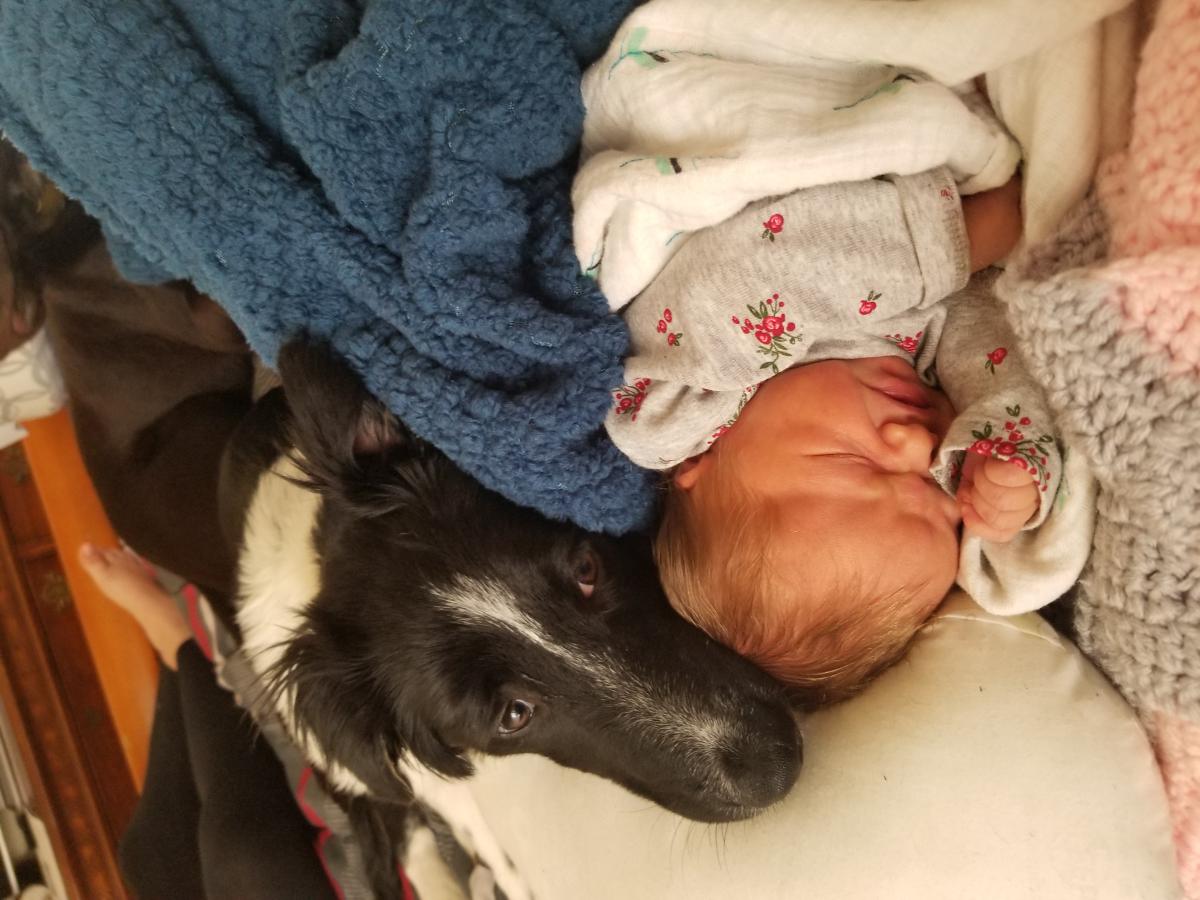 Pet Description:Black and white. Probably up to your knee. She's a sweet dog. |