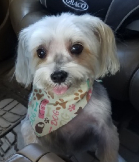 Pet Description:Yorkie/Maltese mix, white/black/gray, 9 lbs. |