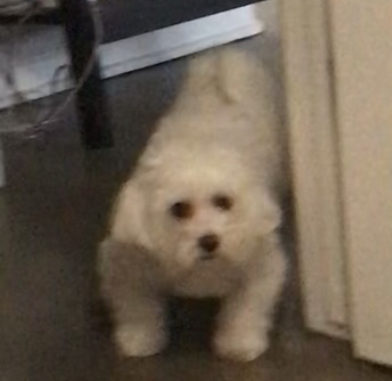 Pet Description:Small (like a Chihuahua in size), stubby legs and short white fur |