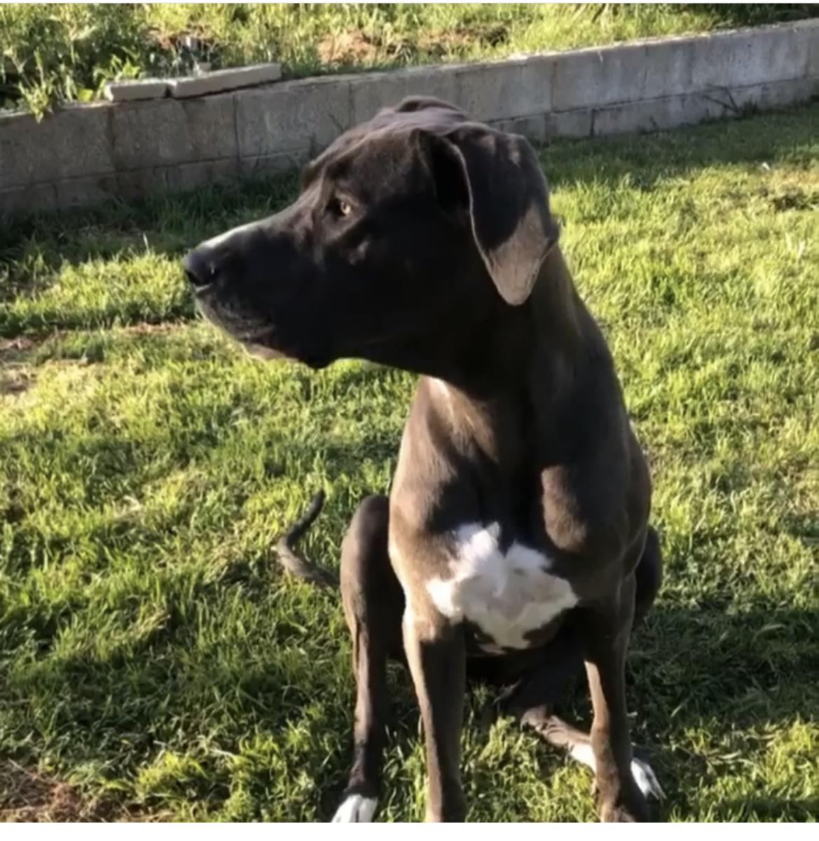 Pet Description:Large Great Dane Grey White spots on chest and paws |