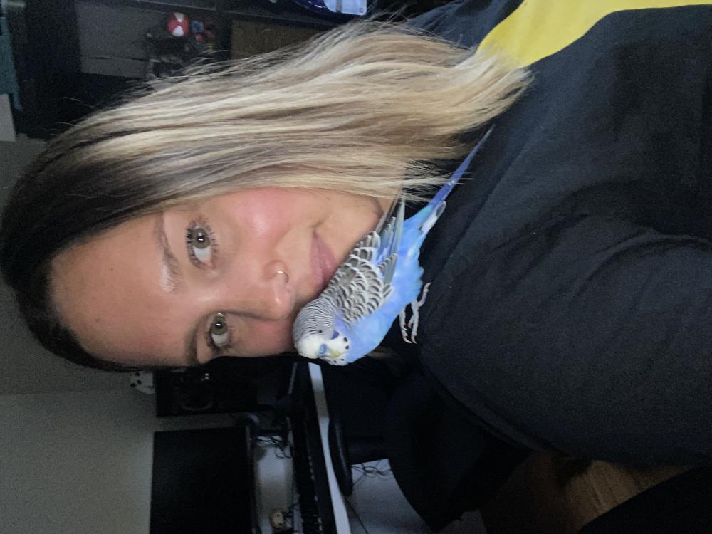 Pet Description:This is a blue English parakeet or budgie. Hand tamed and very sweet, definitely a pet. He is getting lots of food and care:) |