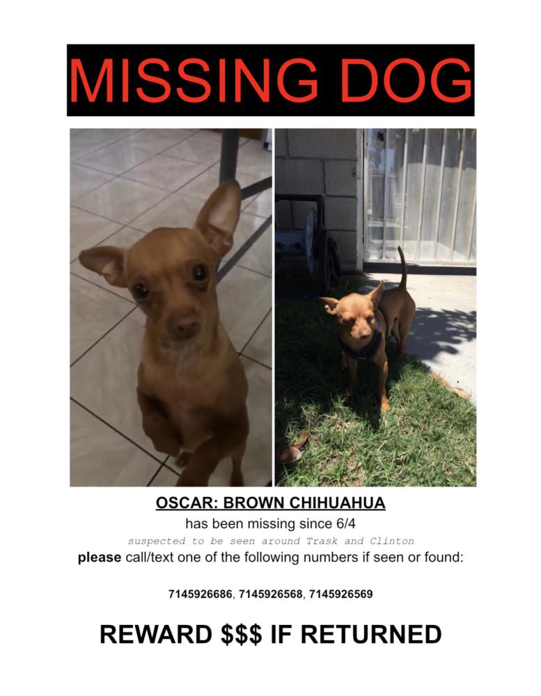 Pet Description:Small brown chihuahua running around. Doesn’t have a collar on. :( we miss him |