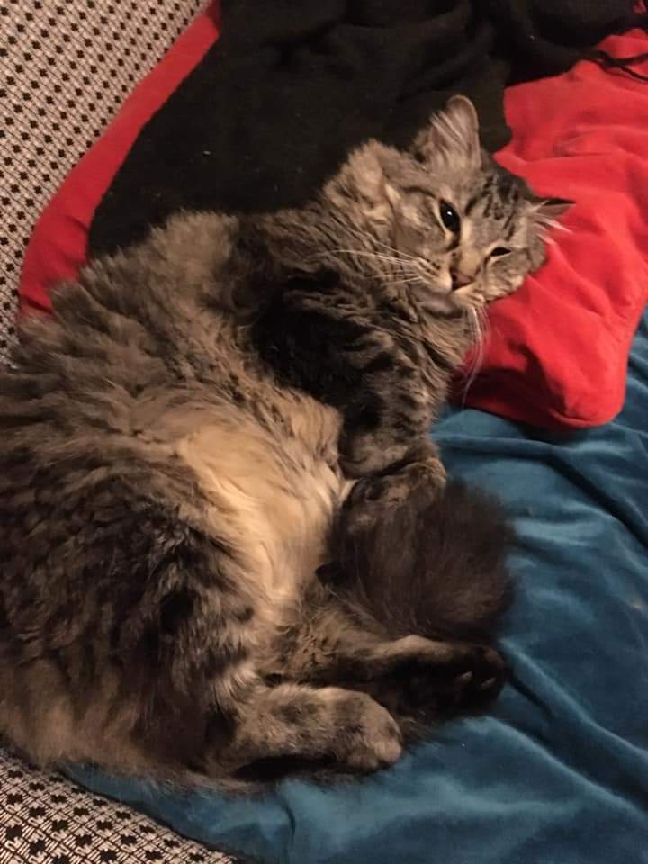 Pet Description:Lost microchiped fixed male green eyes greywhite all tips white neck blacktriped belly kink in tail big long haired 2 very smart & friendly good hunter he is sockies chip #981020017776285 reward any help find him asap lost 042020 ph 7072262740 |