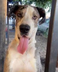 Pet Description:He goes by Rex, but his Id alert tag is under the name Max :Great Dane, grey and white with black patches. He is very sweet non-aggressive will go with anyone. He is about 1yr 2 mo. old he still a puppy even thought he is a gentle giant, he is over 36 inches high when he is on all four feet. |