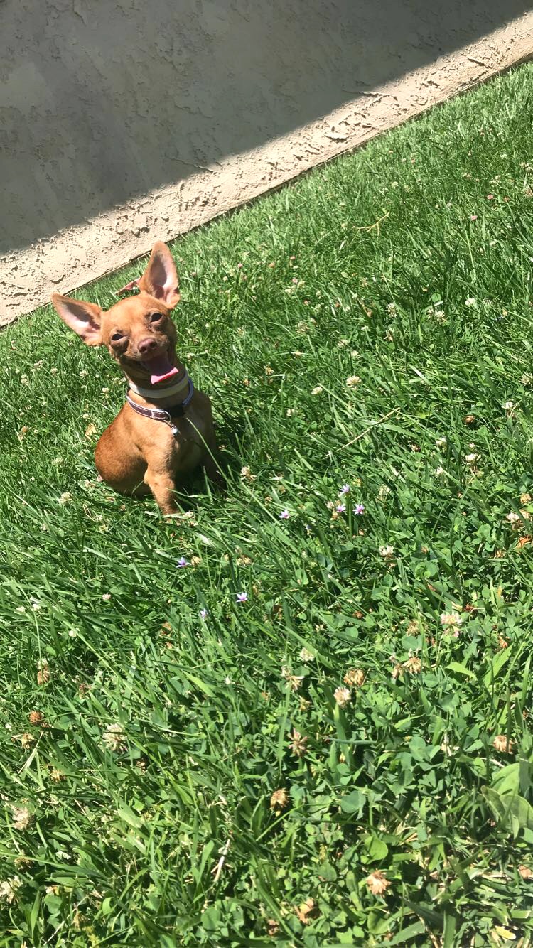 Pet Description:She is a brown little Chihuahua and has brown eyes wearing a cat like caller pink with bell and glitter. |