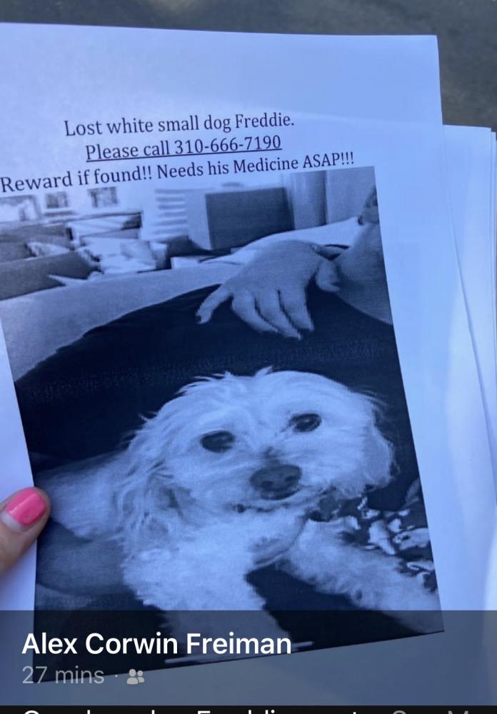 Pet Description:Freddie is a sweet dog about 15 pounds. He is white with a touch of beige. He is chipped but no collar. He is sick and needs medication. |