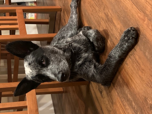 Pet Description:About 6 mo old Black and grey with a white patch on the top of the head |