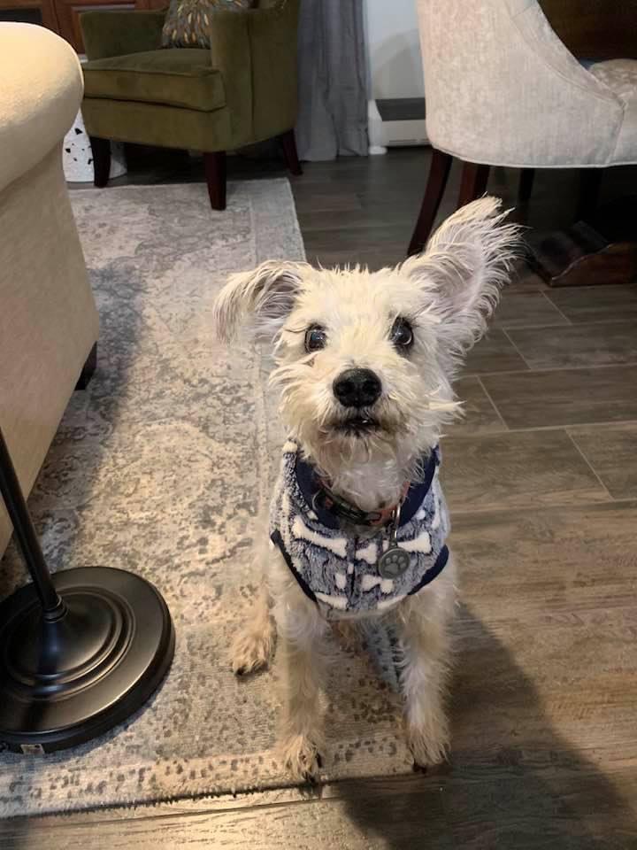 Pet Description:He is a 15 yr old small Schnauzer Poodle mix with gray and white fur. Red collar no tag. Cannot hear or see well anymore. |