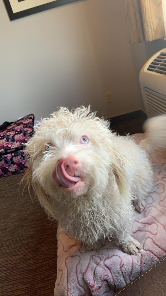 Pet Description:He’s albino has floppy ears and a grown out coat, has a skin condition that needs to be treated regularly so he needs to be home ASAP. He’s my therapy dog and I need him home. Please help me. |